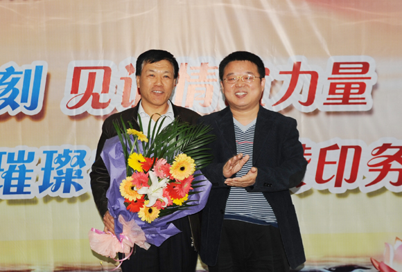 世纪金榜2010年旺季印务总结表彰大会颁奖典礼的开启将整个会议气氛推向了高潮,多家印务合作单位获得了旺季攻坚大奖。大奖激励人心,荣耀见证辉煌。获得金实璀璨奖的王清水经理说:“合作十余载,面对今年巨大的印务压力,我们宁愿放弃其他印刷任务也要坚定的与金榜合作。世纪金榜的企业文化给我留下深刻印象,我与金榜长期合作所建立起来的情谊坚不可摧。世纪金榜在张董的领导下,与其说是一个非常好的平台,不如说更像一所学校,让我们学到做人的真谛和做事的方式。这样的公司将会不战而胜,这样的公司不成功是天理难容。我认为选择世纪金榜就是选择未来,选择世纪金榜就是选择长远利益,选择世纪金榜就是选择明天,所以为了我的明天我选择世纪金榜!”