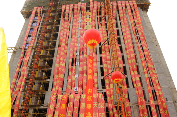 济南城安建工有限责任公司董事长周健也代表承建方表示,世纪金榜大厦是中国民营书业的标志性建筑,我们深感责任重大,今后的工程建设中将进一步加强管理,尽全部努力,把大厦建设得更好。