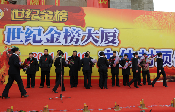 2011年1月10日上午10点38分,世纪金榜大厦封顶仪式隆重举行,民营书业标志性建筑——世纪金榜大厦在中国文化产业繁荣发展的宏阔蓝图中拔地而起。济南市槐荫区人民政府区长田庆盈,槐荫区委常委、宣传部长周敬,槐荫区建设委员会主任章建东,槐荫区发展改革委员会主任沈永强,槐荫区财政局局长肖骏等领导,山东世纪金榜书业有限公司董事长张泉以及来自全国的合伴伙伴、新闻媒体,世纪金榜员工代表等200余人出席了大厦封顶仪式,仪式由山东世纪金榜书业有限公司总经理袁立新主持。