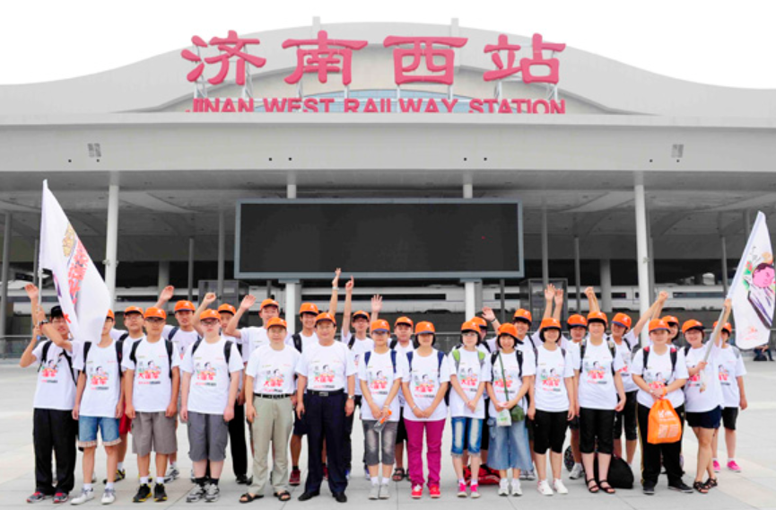 “体验高铁,游学北大”,7月18日,世纪金榜与《齐鲁晚报》联合举办的暑期特别活动正式启动,在家长关注的目光中,24名学子乘坐高铁踏上了本次北京之行。