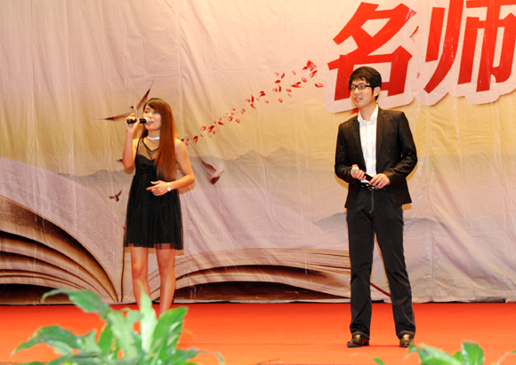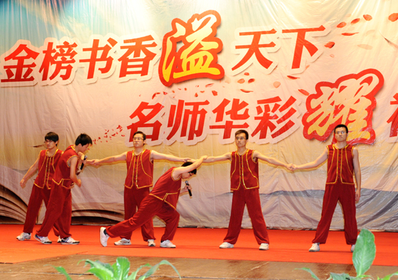 领奖台上惊喜不断,精彩的节目表演更将现场的激情彻底点燃。编委老师王伦勇的一曲《把根留住》寄托了编委老师携手金榜,矢志不渝的深情厚谊;情景剧《前面有座山》再现了世纪金榜同仁旺季攻关时的无悔付出和质量坚守;歌曲《生命》唱出了世纪金榜同仁和编委老师携手打拼,共创辉煌的激情誓言;编委老师和金榜员工共同演唱的《相亲相爱》成为会场的亮点,欢乐的气氛溢满了会场。