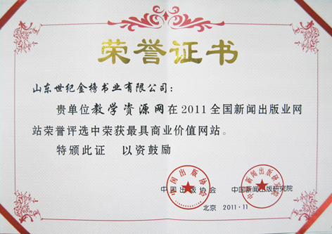 11月25日,2011全国出版业网站年会颁奖盛典在北京隆重开幕,世纪金榜教学资源网荣获2011全国新闻出版业最具商业价值网站、全国新闻出版业网站百强两项殊荣,公司总经理袁立新代表公司领奖,新闻出版总署科技与数字出版司司长张毅君为公司颁发了奖牌和证书。