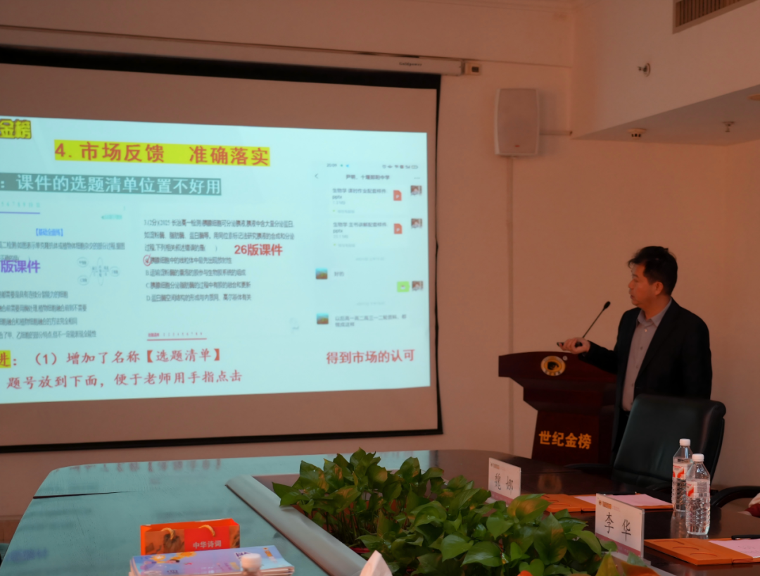 座谈会上,集团小学、初中、高中图书系列负责人分别详细介绍了各学段图书的核心亮点、策划理念、内容架构及特色优势等,全面展现了世纪金榜在不同学段教辅领域的深耕与创新。